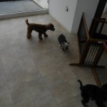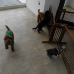女の子3頭に男の子1頭でした。軽く追いかけたりしている様子が見られましたが、みんな一緒に遊ぶ様子もなく、バラバラに行動していました。まだまだ犬より人が好きなようです。