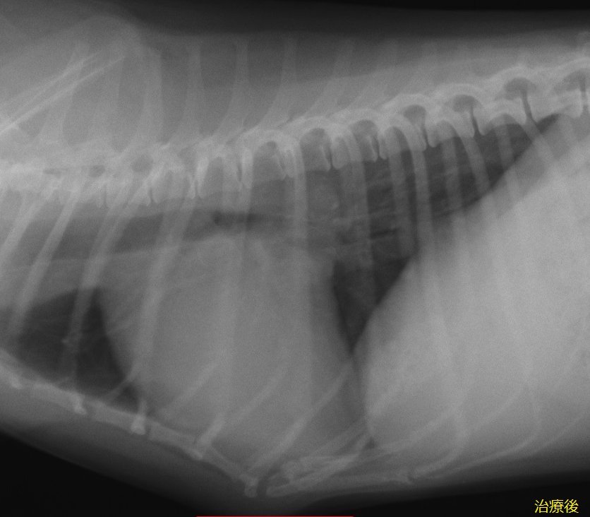 聴診、レントゲンにて肺水腫が確定しました。