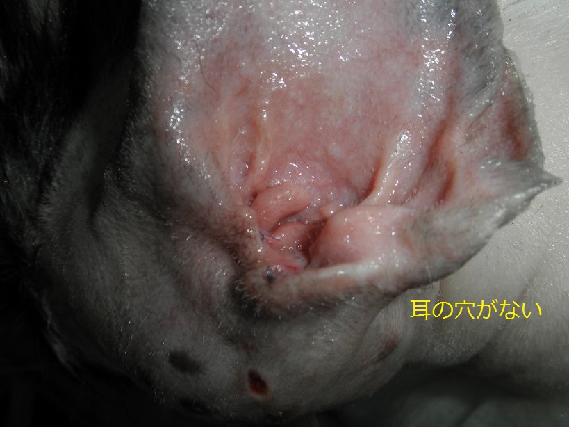 小さいときから耳の穴がないとの事で、最近になって、耳の周囲の皮膚が腫れたとの事で紹介来院されました。