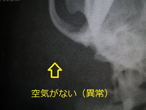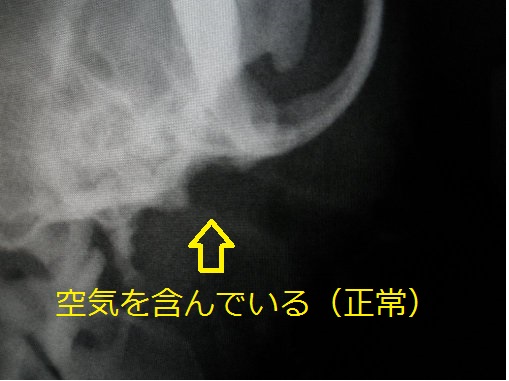 レントゲン画像でもわかるように、通常耳は空気を含んでいますが、少しも空気を含んでいませんでした。