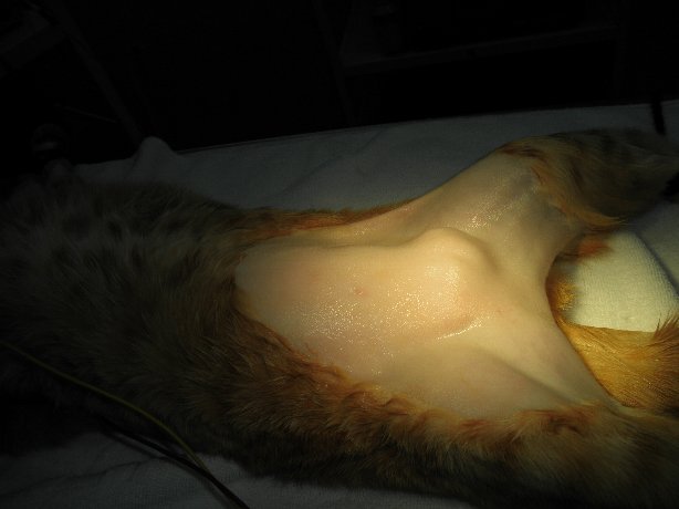 この症例は猫ちゃんで、以前できものができ、切除したら悪性黒色腫との事でした。