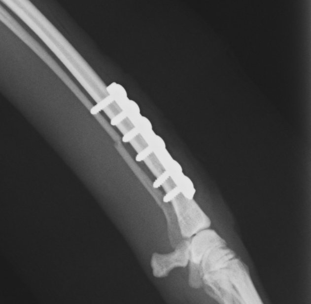 今回はDCP(ダイナミックコンプレッションプレート)を用いて手術を実施しました。