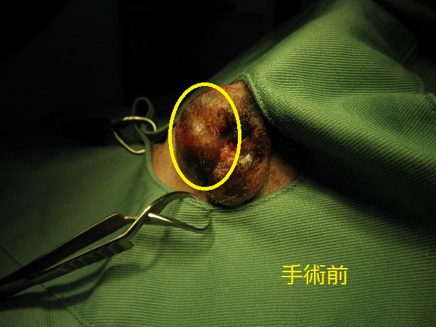手術は腫瘤摘出と去勢手術。
